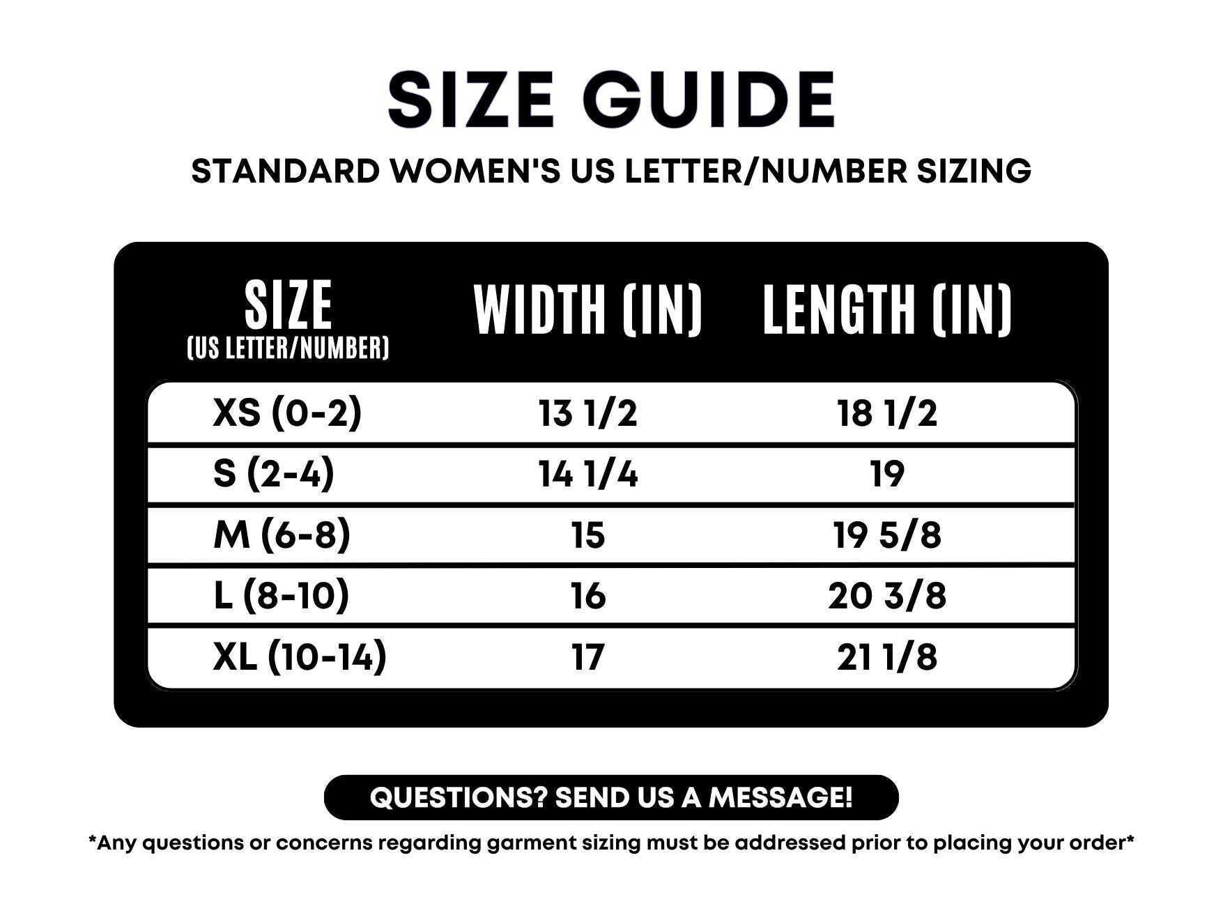 Women's Standard US Letter/Number Sizing